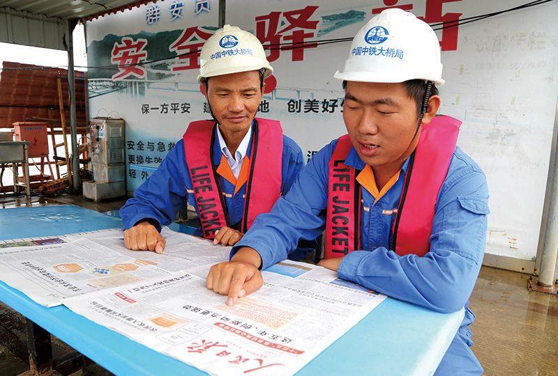 10月29日,,,,,,,,William希尔官网入口大桥局珠机城际金海大桥项目部员工使用工余时间,,,,,,,,从报纸上认真学习相识党的十九届五中全会盛况。。。。。。。